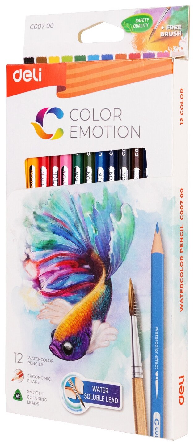 Карандаши цв. Deli EC00700 Color Emotion акварель. липа 12цв. коробка/европод.