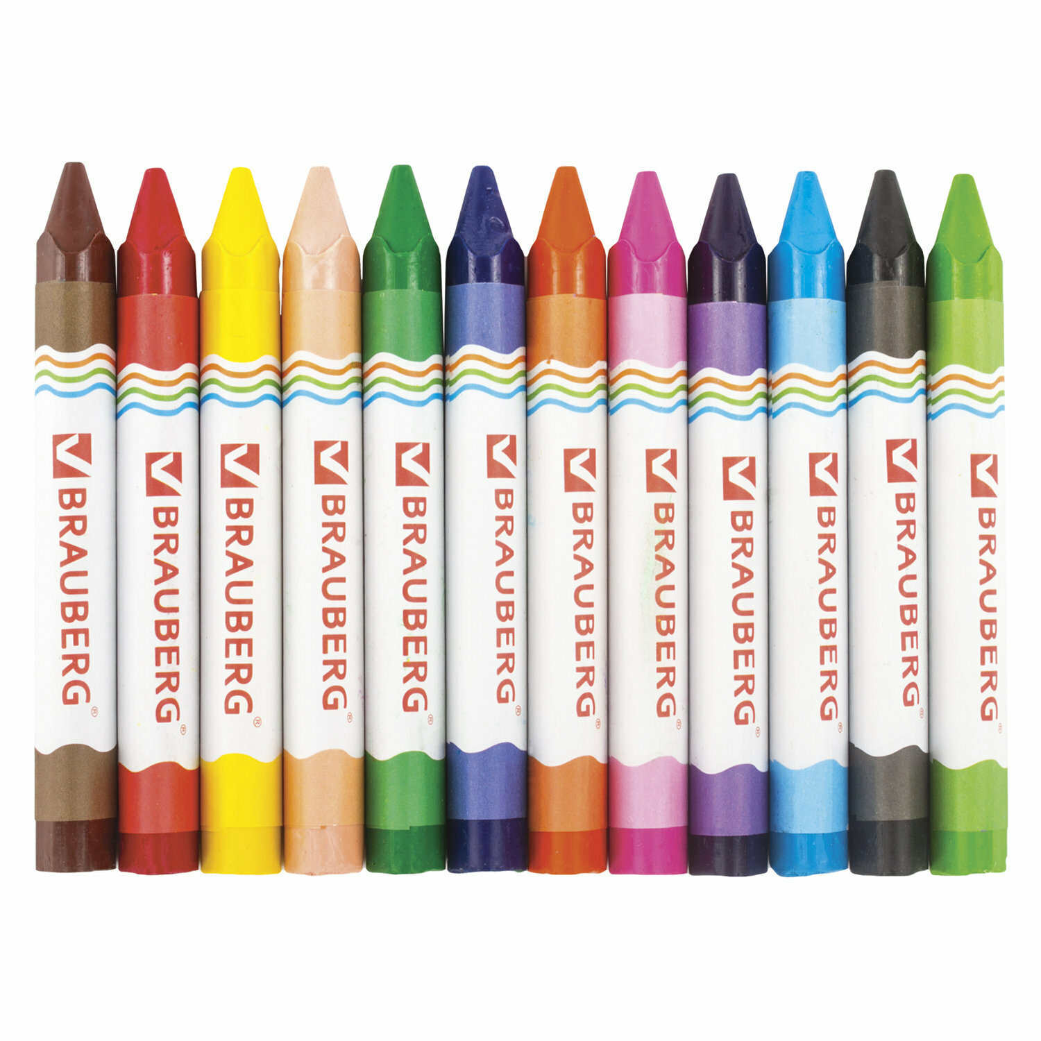 Восковые карандаши утолщенные BRAUBERG "академия", набор 12 цветов, 227287 (цена за 1 ед.товара)