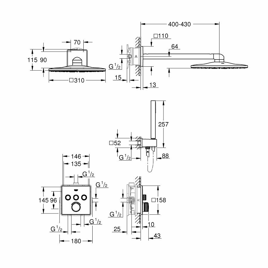 Душевой комплект 310 мм Grohe SmartControl 34712000