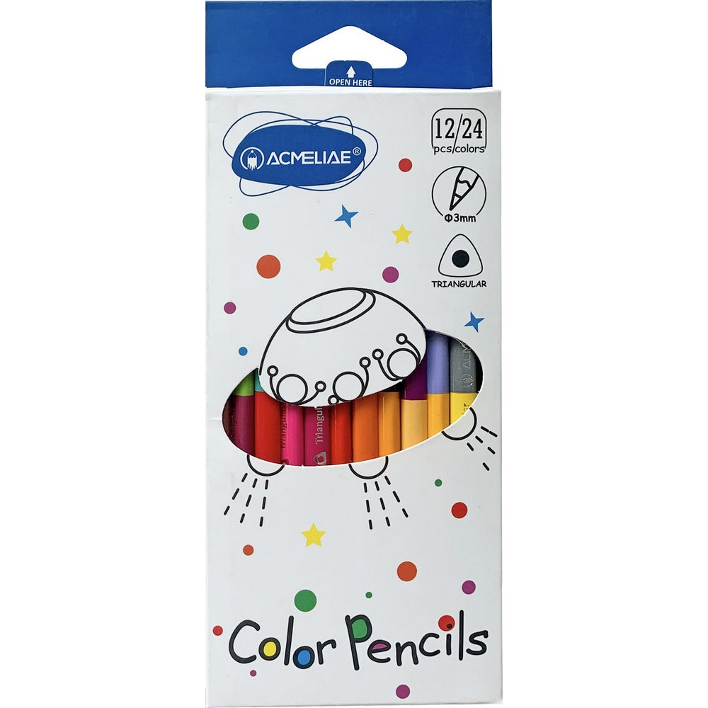 Набор цветных двусторонних трехгранных карандашей ACMELIAE 12 шт/24 цветов, в картонном футляре