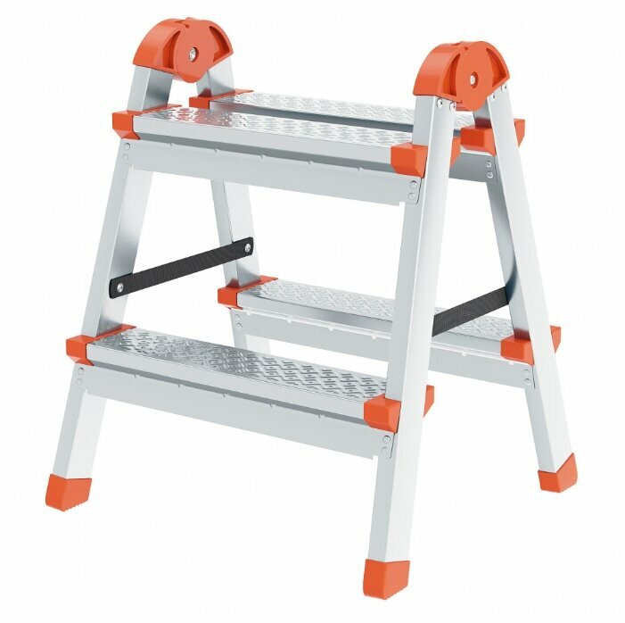 Стремянка двухсторонняя 2 ступени, сталь профиль, стальные ступени, Россия Сибртех
