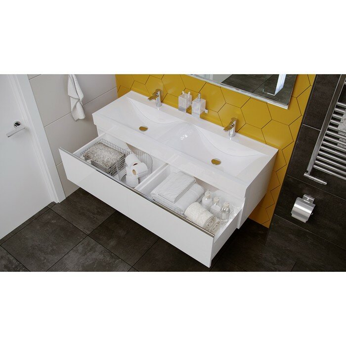 Тумба подвесная с раковиной VELVEX Pulsus 140 Белый/Белый Размеры: Высота 520мм Глубина 476мм Ширина 1388мм