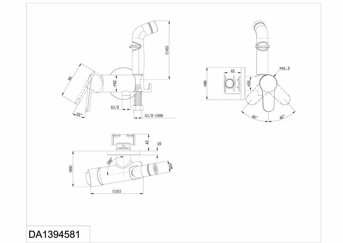 Гигиенический душ D&K DA1394581 RheinMarx Смеситель с гигиеническим душем, хром