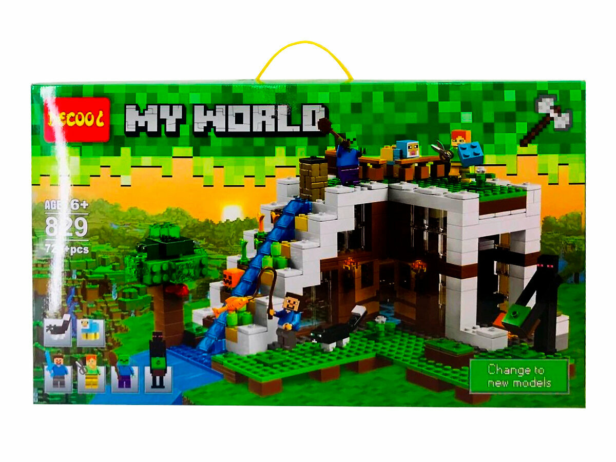 Конструктор Jisi bricks 829 Майнкрафт — База на водопаде, из серии Компьютерные игры, Майнкрафт