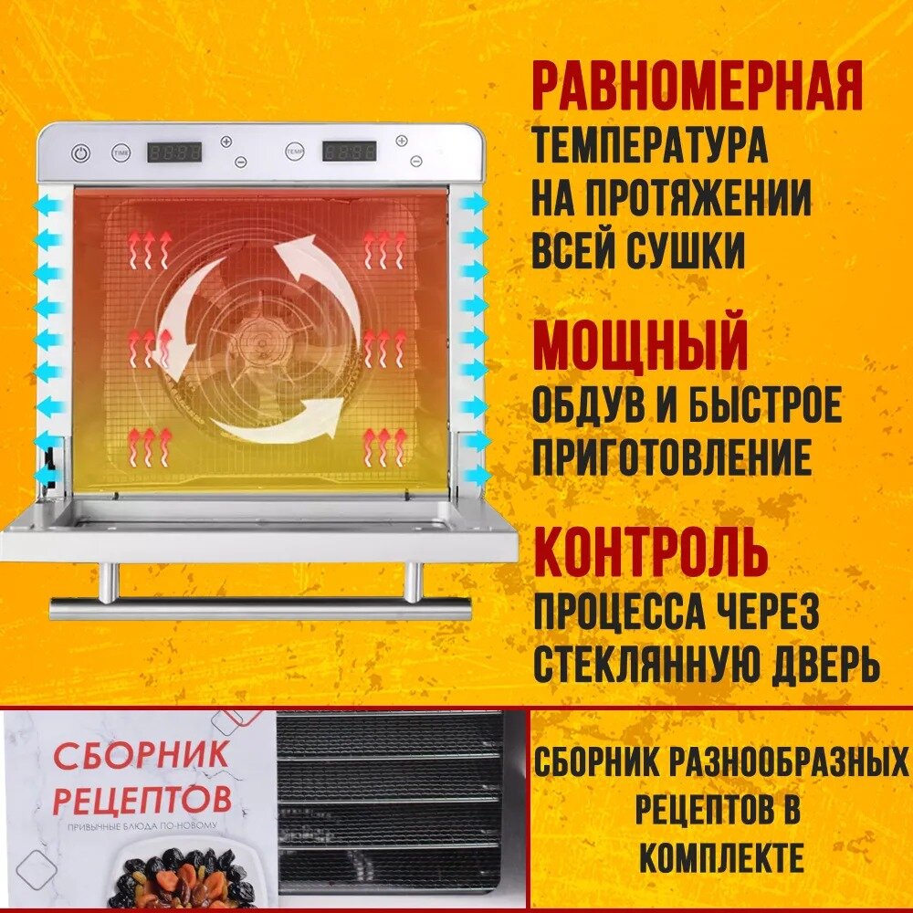 | Плюсы: | отличная сушилка, работает с продуктами в разы, чем духовка, бесшумная |