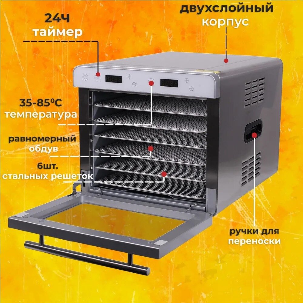 Дегидратор для мяса TAKARA DF-07 в ДВУХСЛОЙНОМ КОРПУСЕ из нержавеющей стали / сушилка для овощей и фруктов