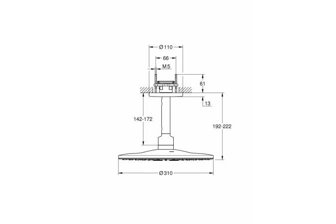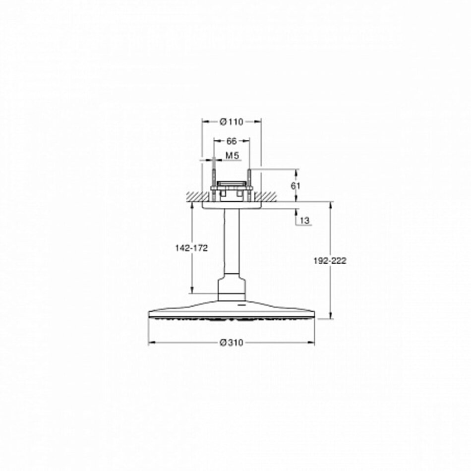 Верхний душ с потолочным душевым кронштейном 142 мм, 2 режима струи, GROHE Rainshower SmartActive 310, хром, (26477000)