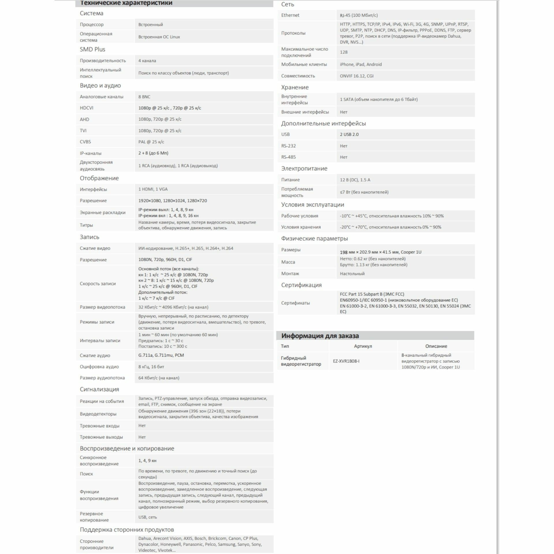 Видеорегистратор HD-CVI EZ-CVI EZ-XVR1B08-I интересное: