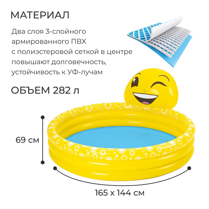 Бассейн BESTWAY надувной детский 165х144х69см. Смайлик с разбрыз. арт. 53081