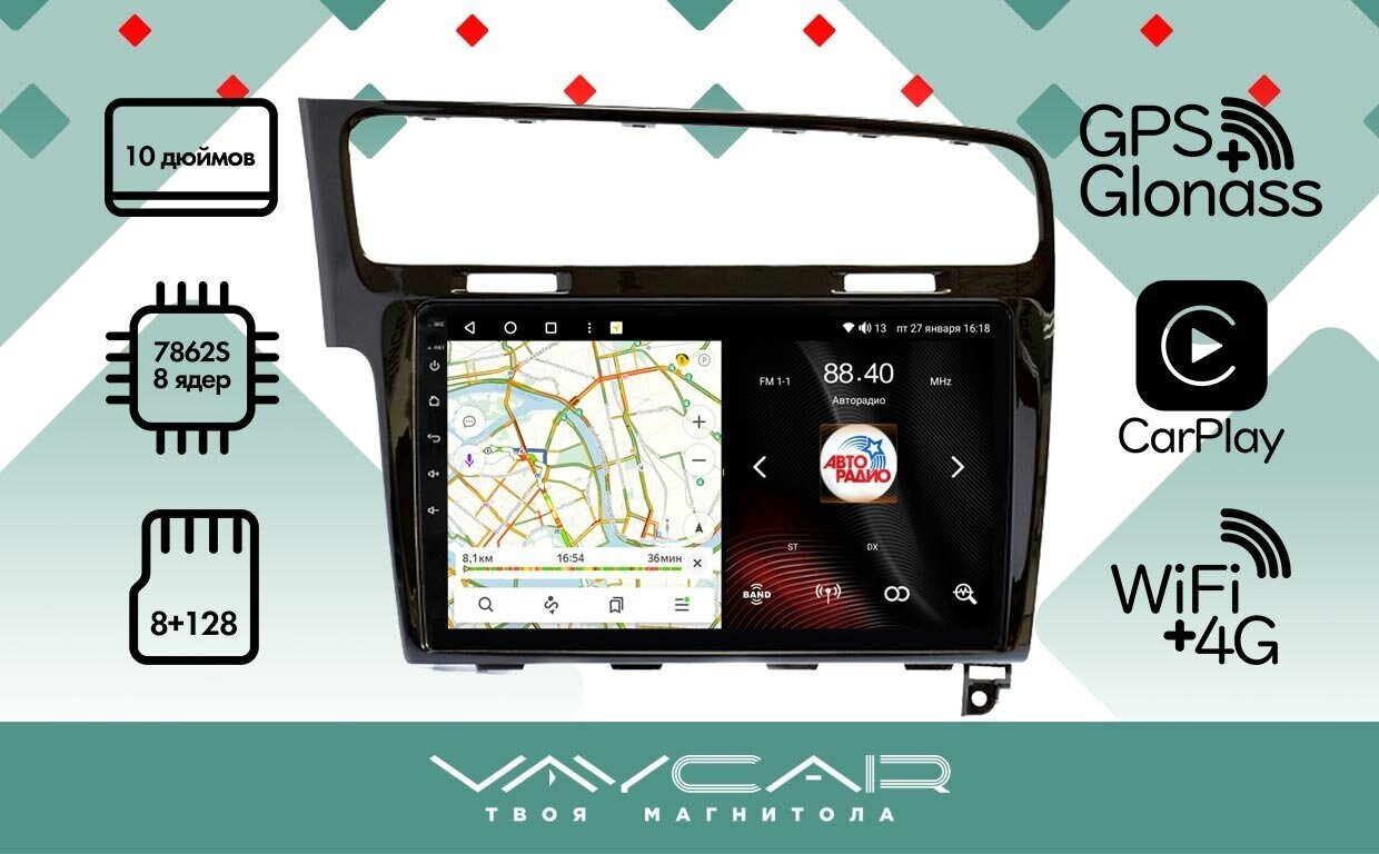 Магнитола Vaycar 10VO8 для VOLKSWAGEN Golf 7 2013+ (Андроид 10, 8+128, 8 ядер, QLED 10") в штатное место интересное: