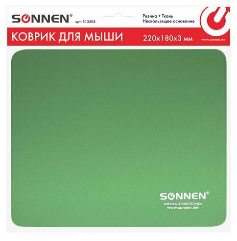 Купить Коврик для мыши Sonnen "Green", резина, ткань, 220х180х3 мм (513305)