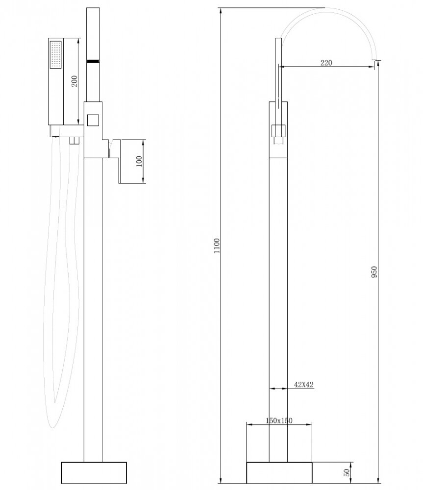 Напольный смеситель для ванны с душем Abber Wasserfall AF8615 С внутренней частью, хром