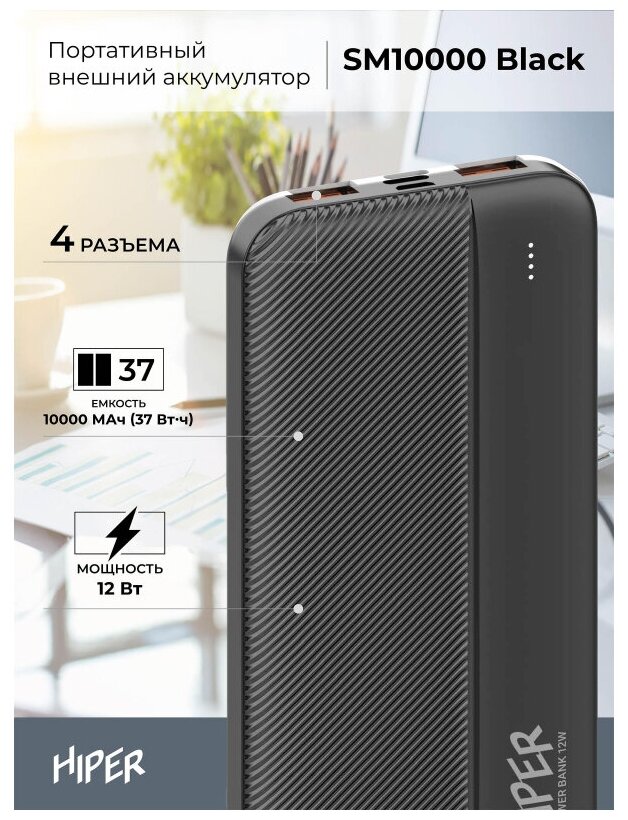 Внешний аккумулятор HIPER SM10000 Black (SM10000 BLACK)