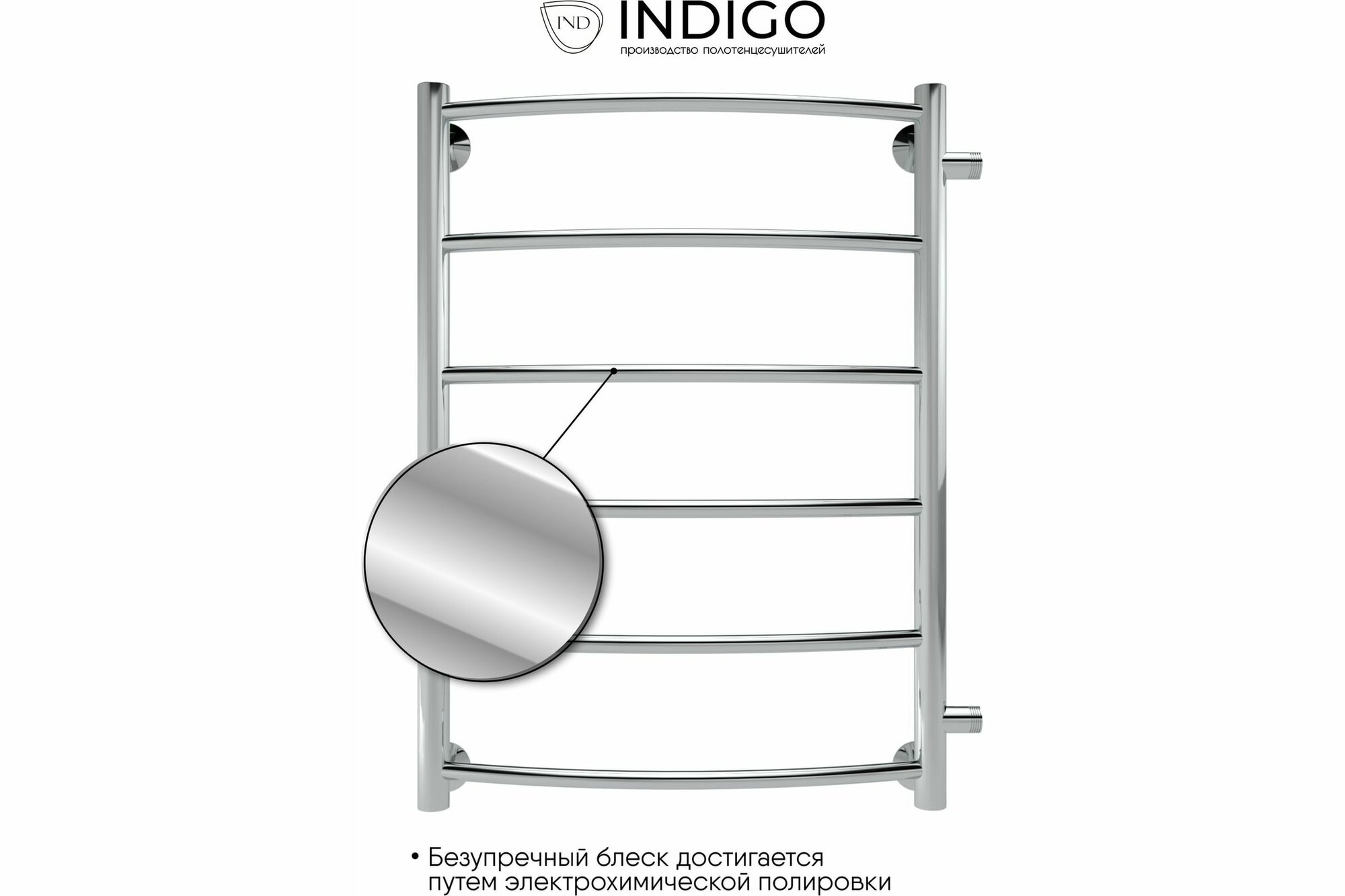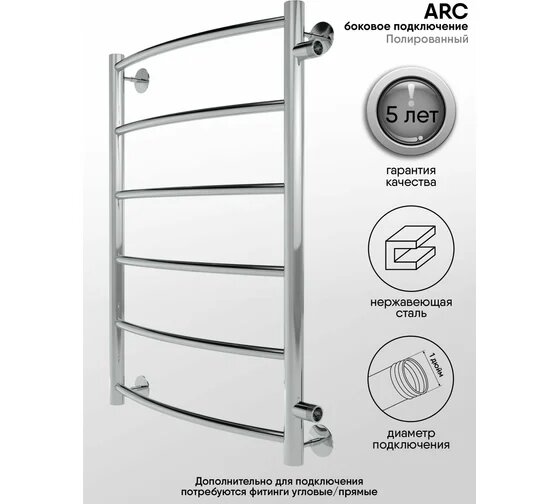 Полотенцесушитель водяной Arc 70/30 межосевое расстояние 60 боковое подключение , Полированный INDIGO