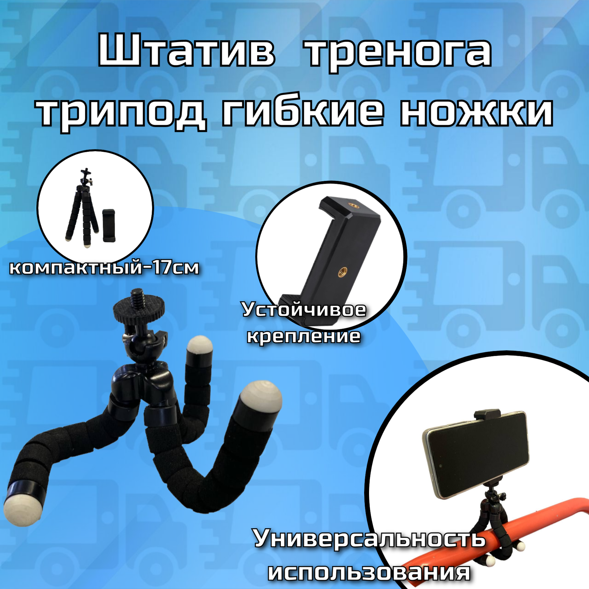 Ниже Вы можете прочитать отзывы на Штатив для телефона тренога трипод настольный гибкие ножки 17 см, черный, ознакомится с подробными характеристиками, посмотреть интересные обзоры и фотографии на Штатив для телефона тренога трипод настольный гибкие ножки 17 см, черный.