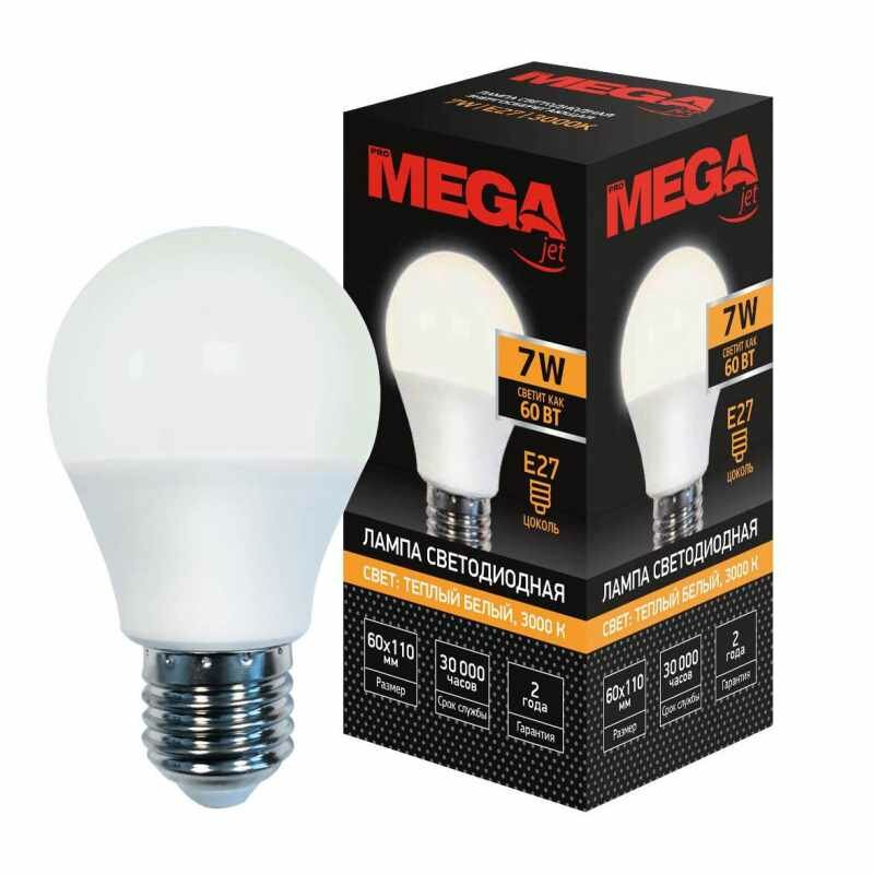 Лампа светодиод Mega E27 7W 3000K груша ProMega jet 1053688 интересное: