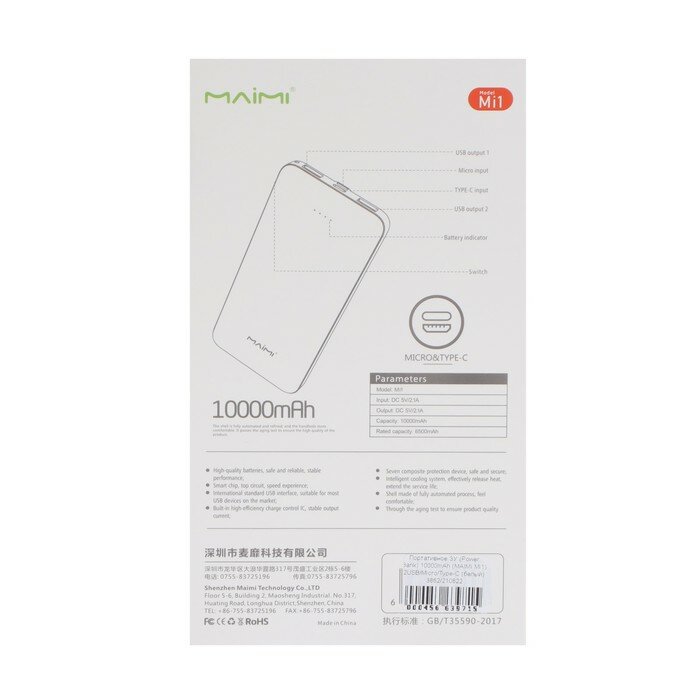 Внешний аккумулятор Maimi Mi1, 10000 мАч, 2 USB, MicroUSB, Type-C, 2.1 А, белый интересное: