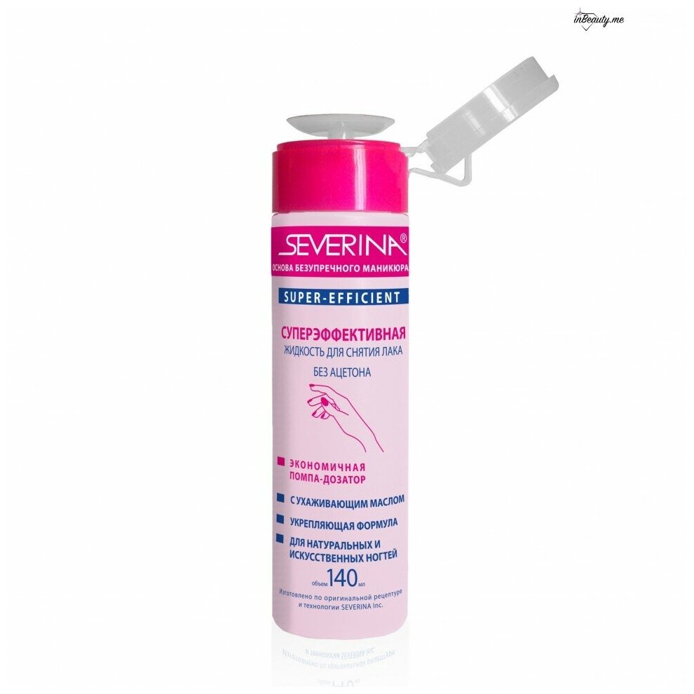 SEVERINA, Жидкость для снятия лака, без ацетона, суперэффективная, помпа, 140(150) мл
