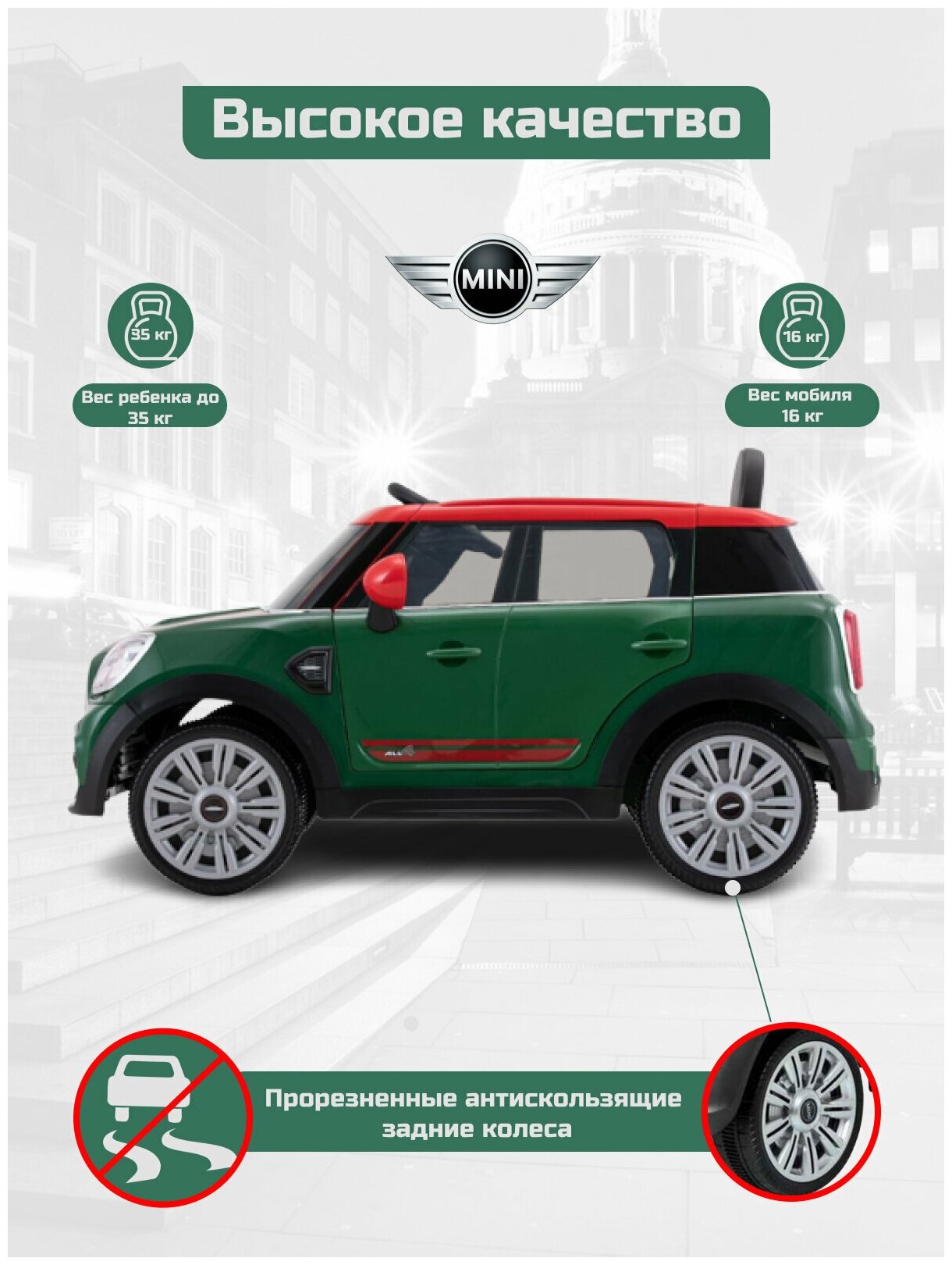 Детский электромобиль ROLLPLAY MINI COUNTRYMAN Premium 12V Green интересное: