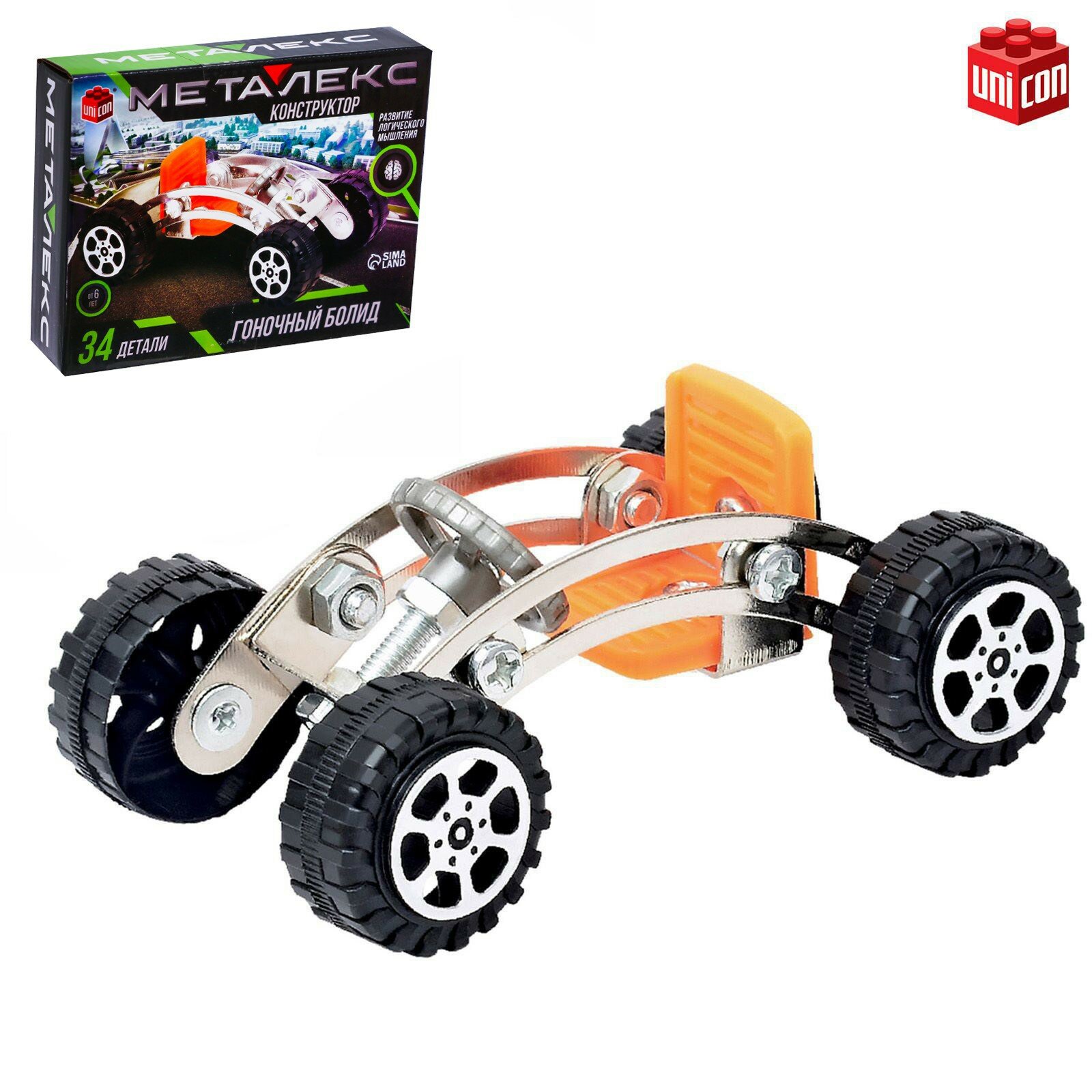 Купить Металлический конструктор Unicon "Гоночный автомобиль", 34 детали (874065)