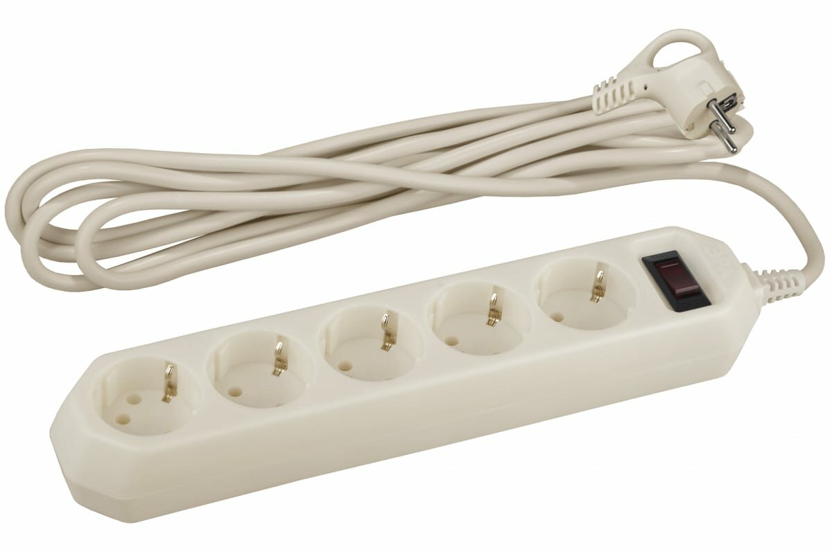 Сетевой фильтр ЭРА USF 5 гнезд, заземлением, с выключателем, 3х0,75мм², слоновая кость