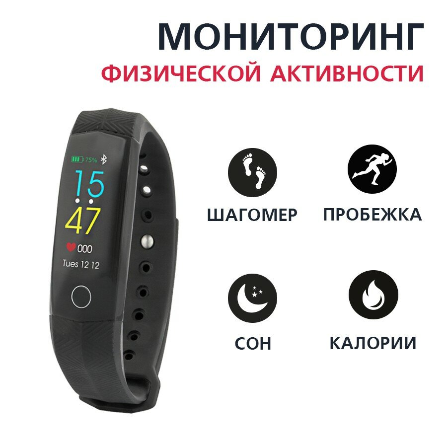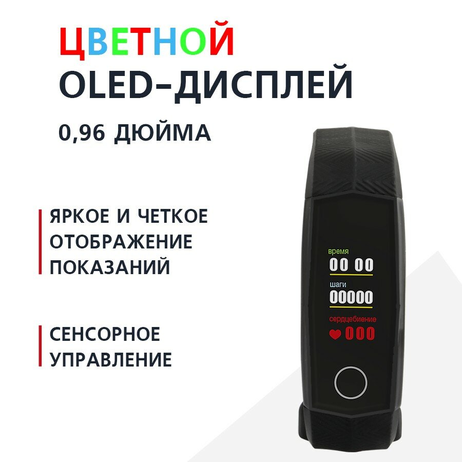 Фитнес-браслет Red Line RF-01, 0.96", IP68, пульсометр, датчик уровня кислорода, черный