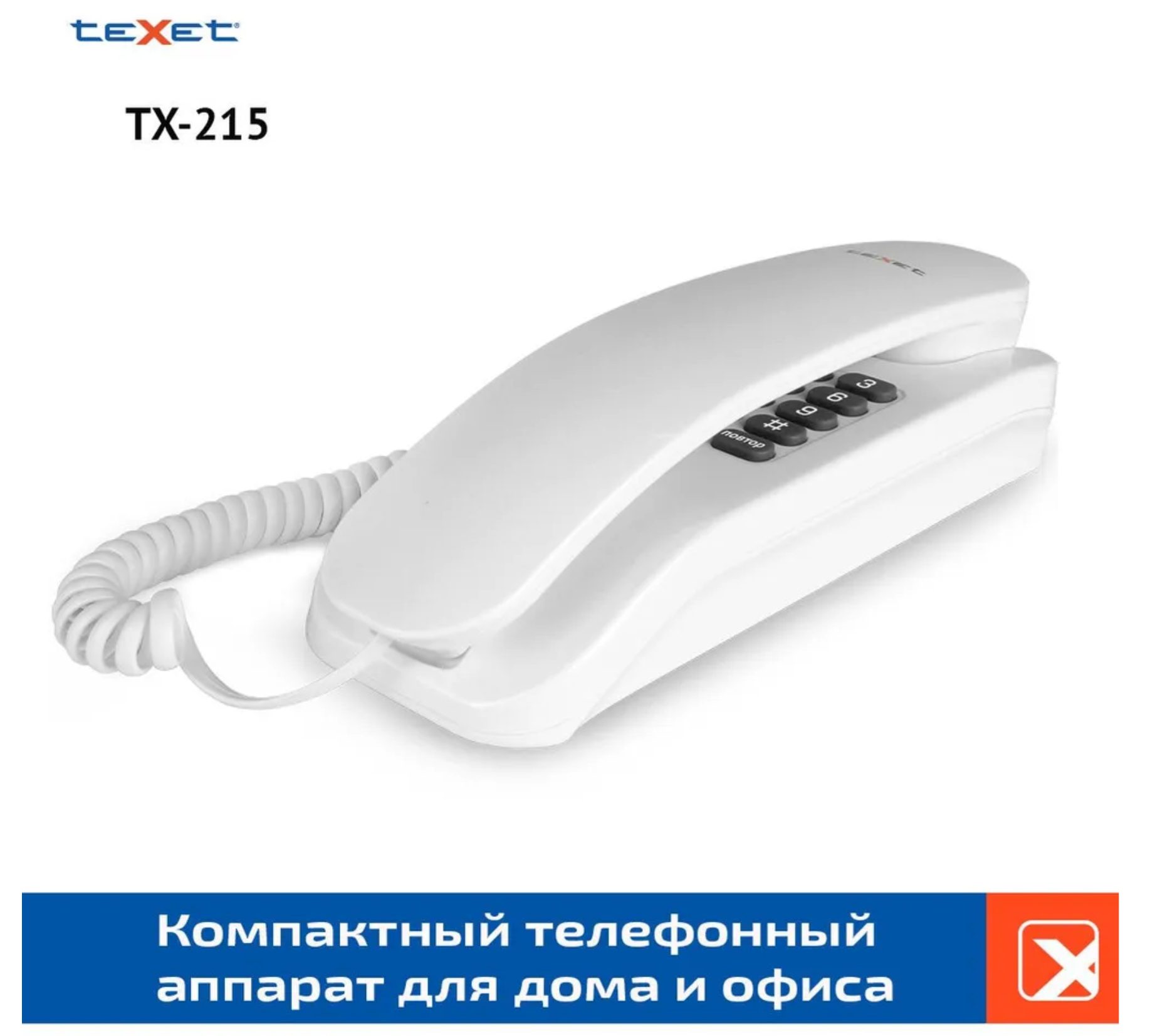 Телефон проводной teXet ТХ-215, повторный набор, компактный размер, белый ( Артикул 337861 )