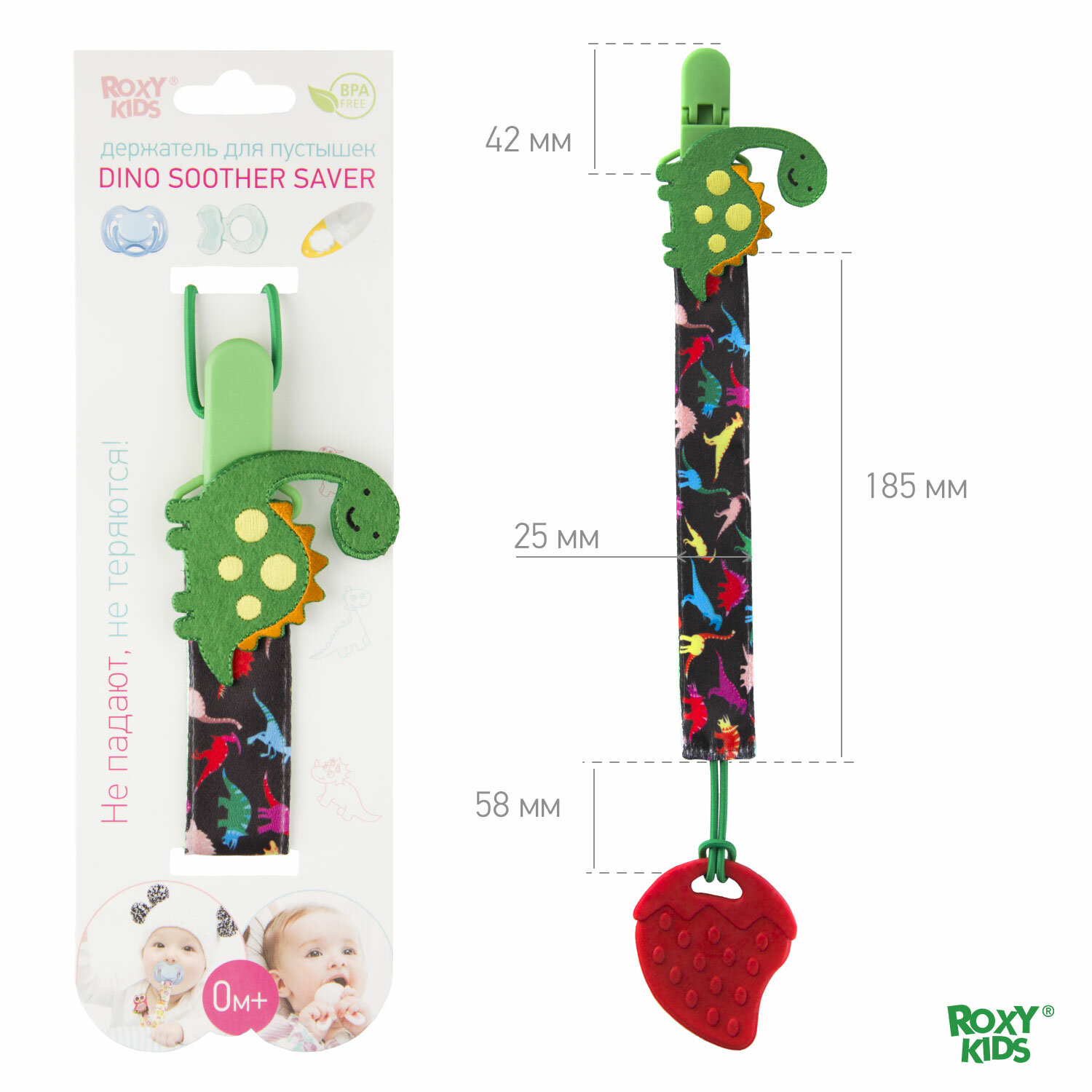 Держатель пустышки Roxy kids Soother Saver, с рождения, Дино