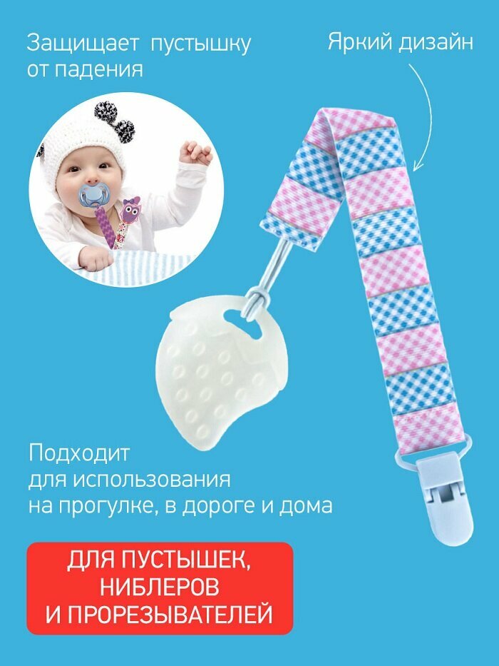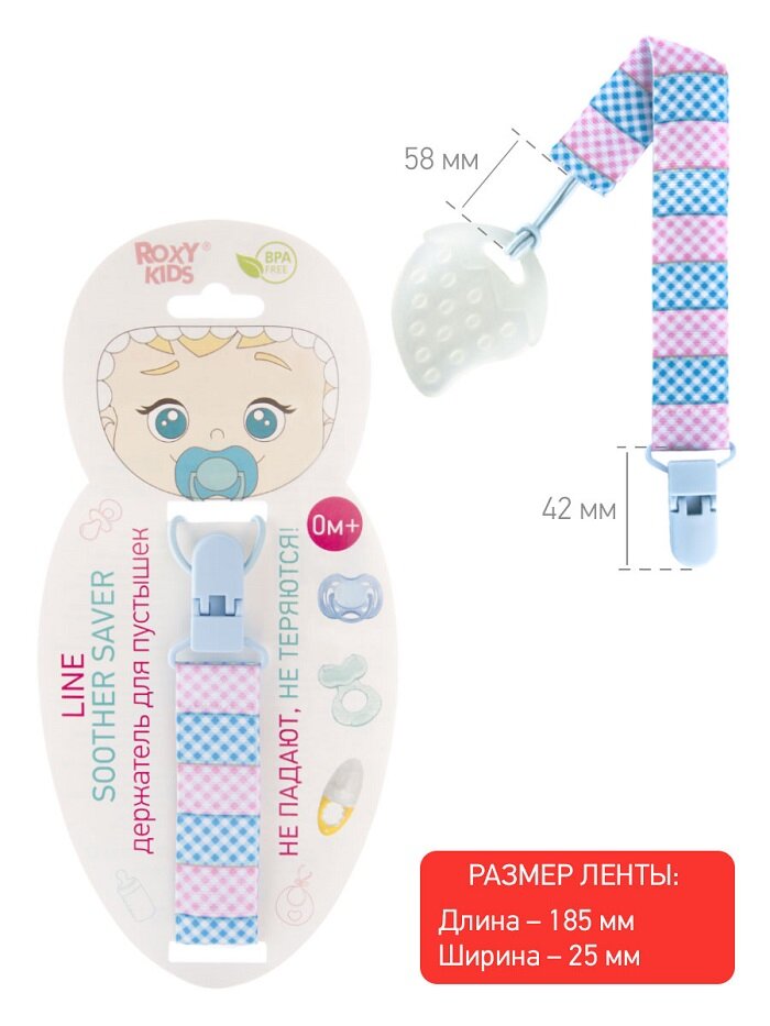 Держатель пустышки Roxy kids Soother Saver, с рождения, голубой-розовый