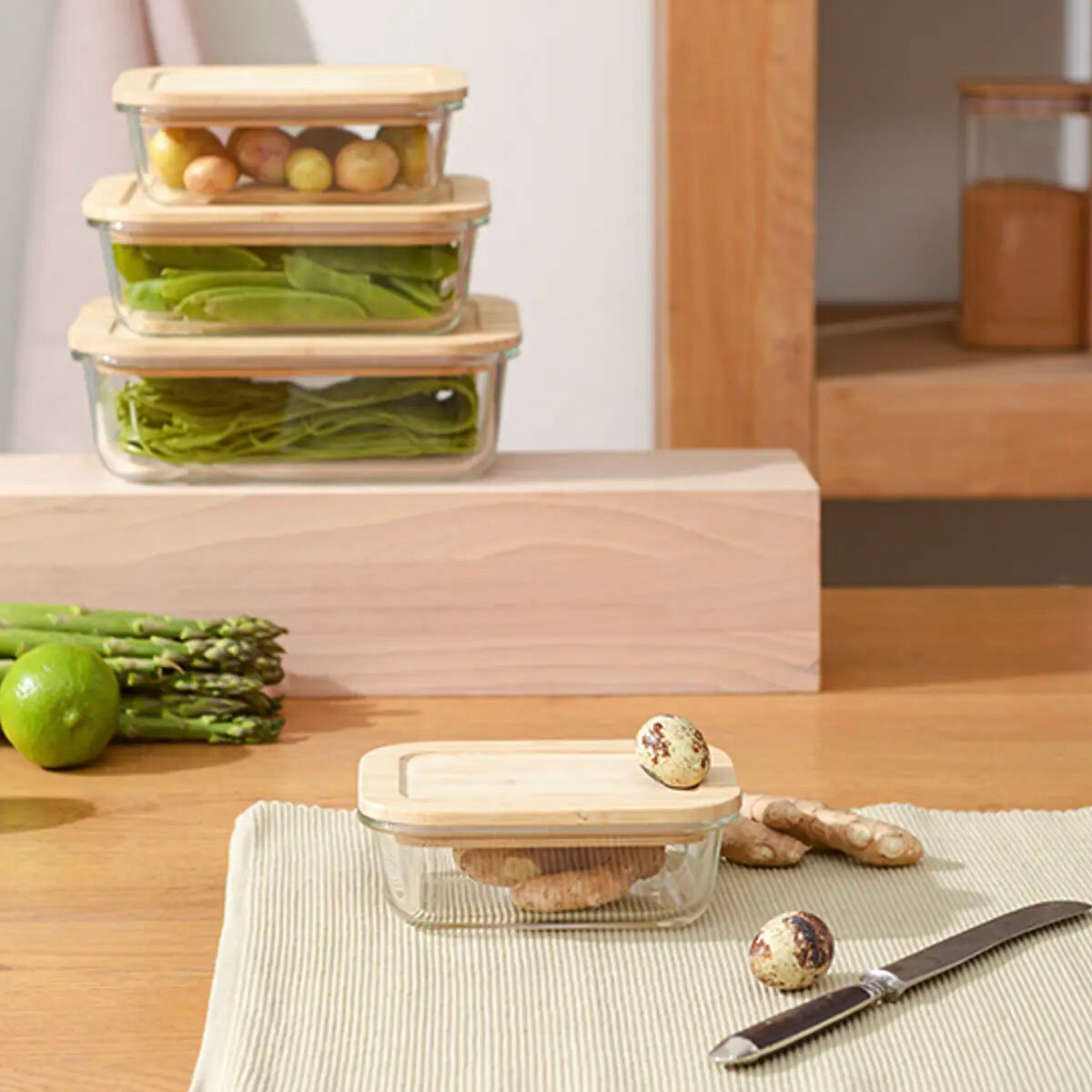 Купить Контейнер 370 мл для хранения продуктов и запекания еды стеклянный с крышкой из бамбука Smart Solutions LBA370RC