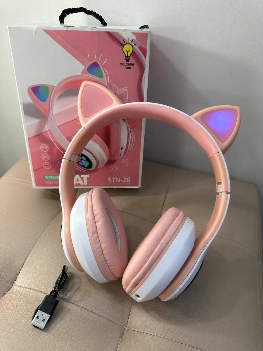 Беспроводные наушники "Кошачьи ушки", светящиеся, CAT STN-28 (розовые)