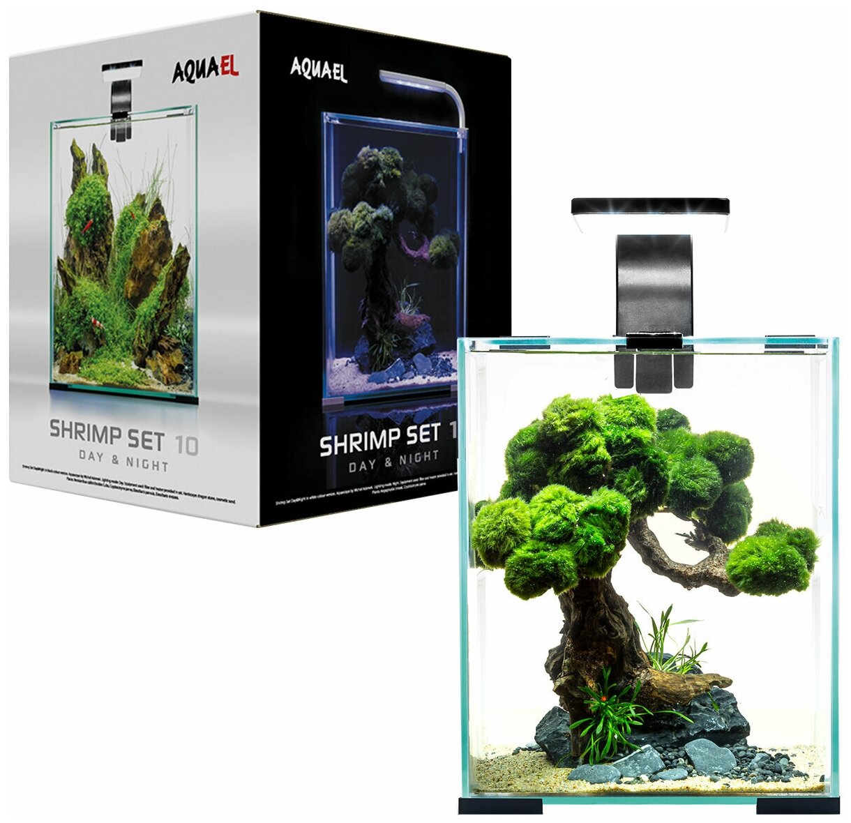 Aквариум AQUAEL SHRIMP SET DAY & NIGHT 10 черный (10 л) куб