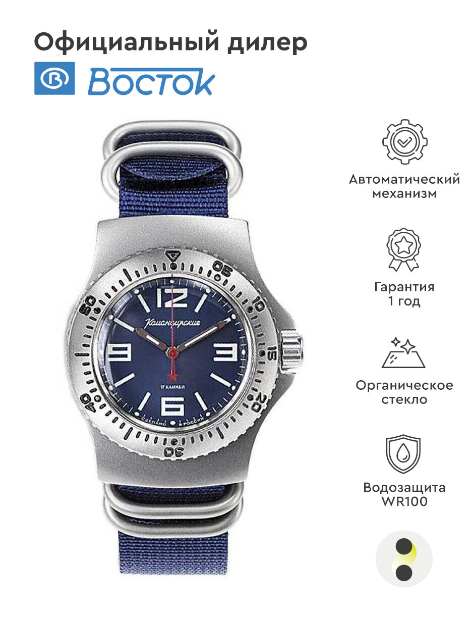 Мужские наручные часы Восток Командирские 280681-blue, нейлон, синий интересное: