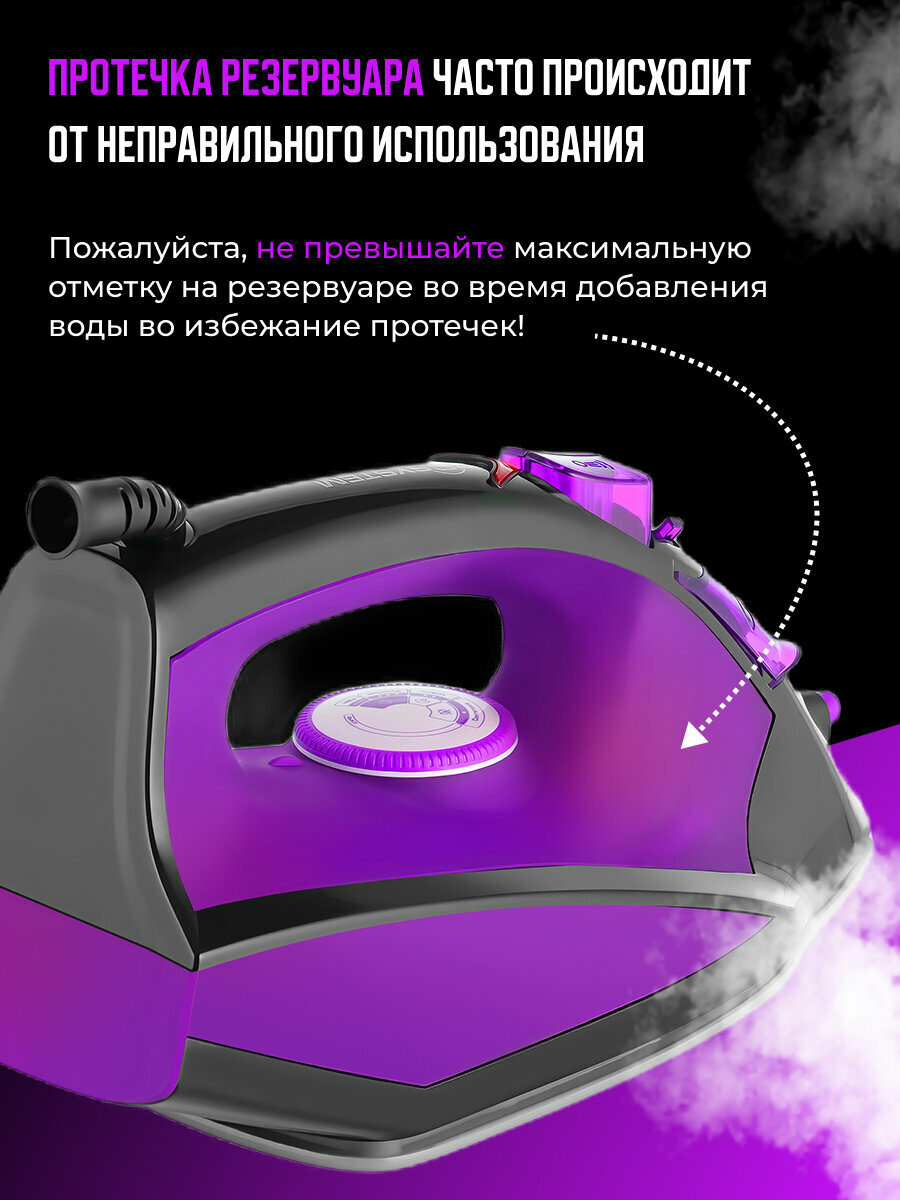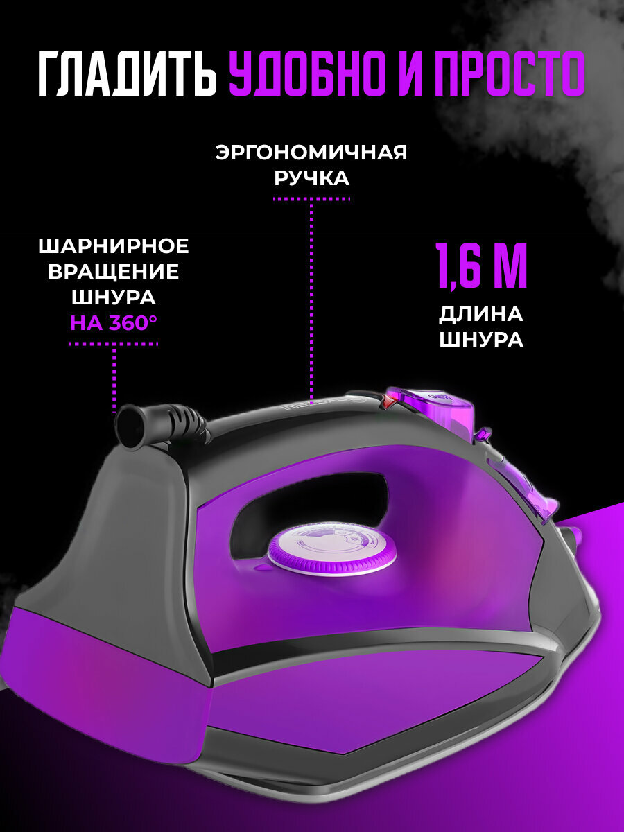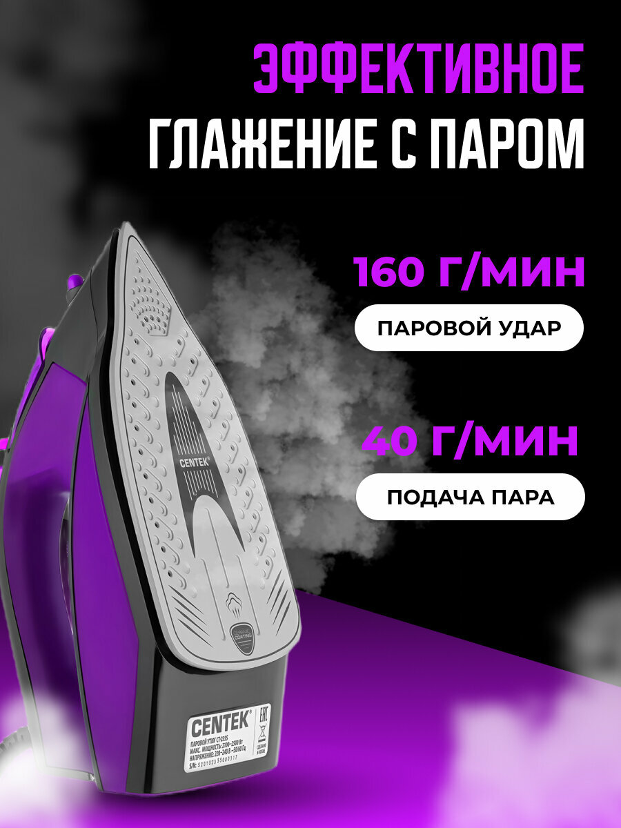 Утюг Centek Ct-2355, 2500 Вт, керамическая подошва, 200 мл, 40 г/мин, фиолетовый Centek 9899067 .