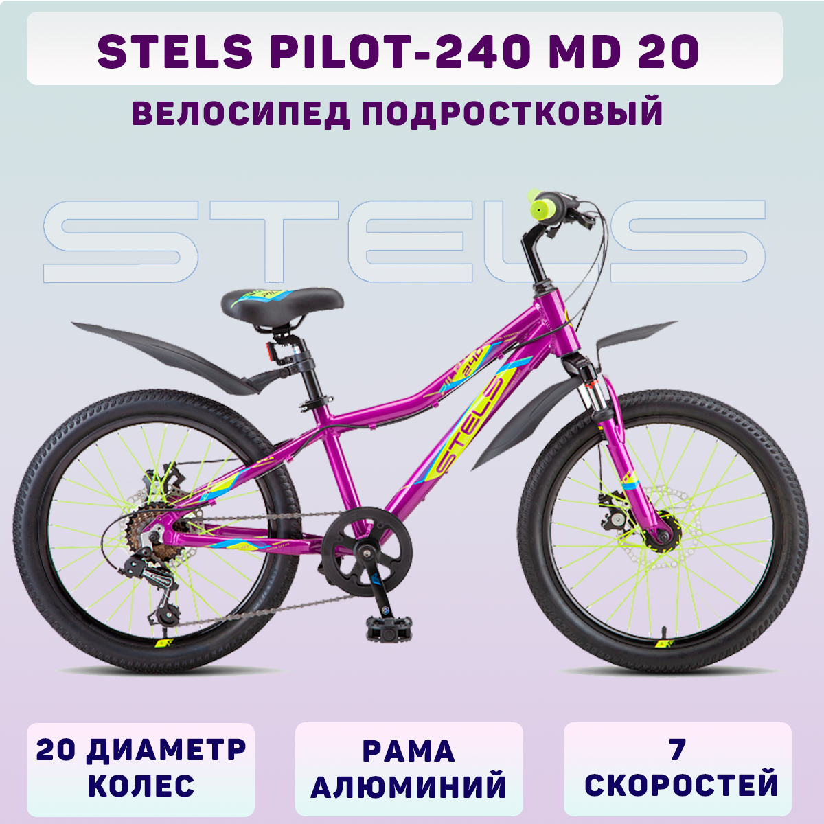 STELS LU088722 Велосипед 20 подростковый STELS Pilot 240 MD V010 (2021) количество скоростей 7 рама алюминий 11 пурпурный