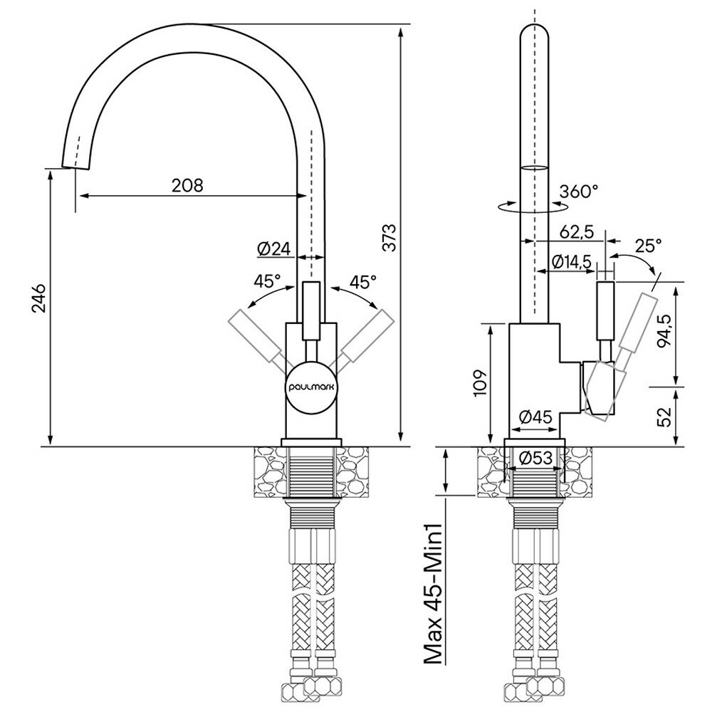Paulmark Смеситель для кухни Paulmark Holstein Ho212063-DGCR графит-хром