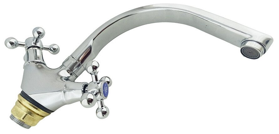 Смеситель для кухни/ Dokorona двухвентильный из латуни, крепление на гайке, цвет глянцевый хром.