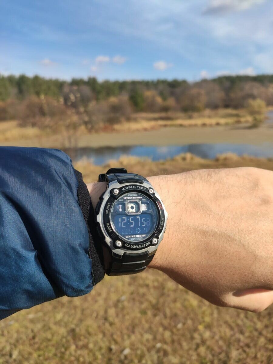 | Минусы: | Скорее больше индивидуальная придирки чем минус, в данных часах имеется функция мирового времени, можно установить 5 часовых поясов. переключение между ними осуществляется 1 кнопкой, последовательно перебирая ячейки с сохраненными поясами. Так вот мне по роду деятельности необходимы 2 часовых пояса в постоянном доступе для удобства использования. Было бы удобнее если бы можно было удалить из памяти лишние настройки. то есть оставит 2 необходимых мне пояса на данный момент и не листать все пять чтобы вернуться к базовому городу. |