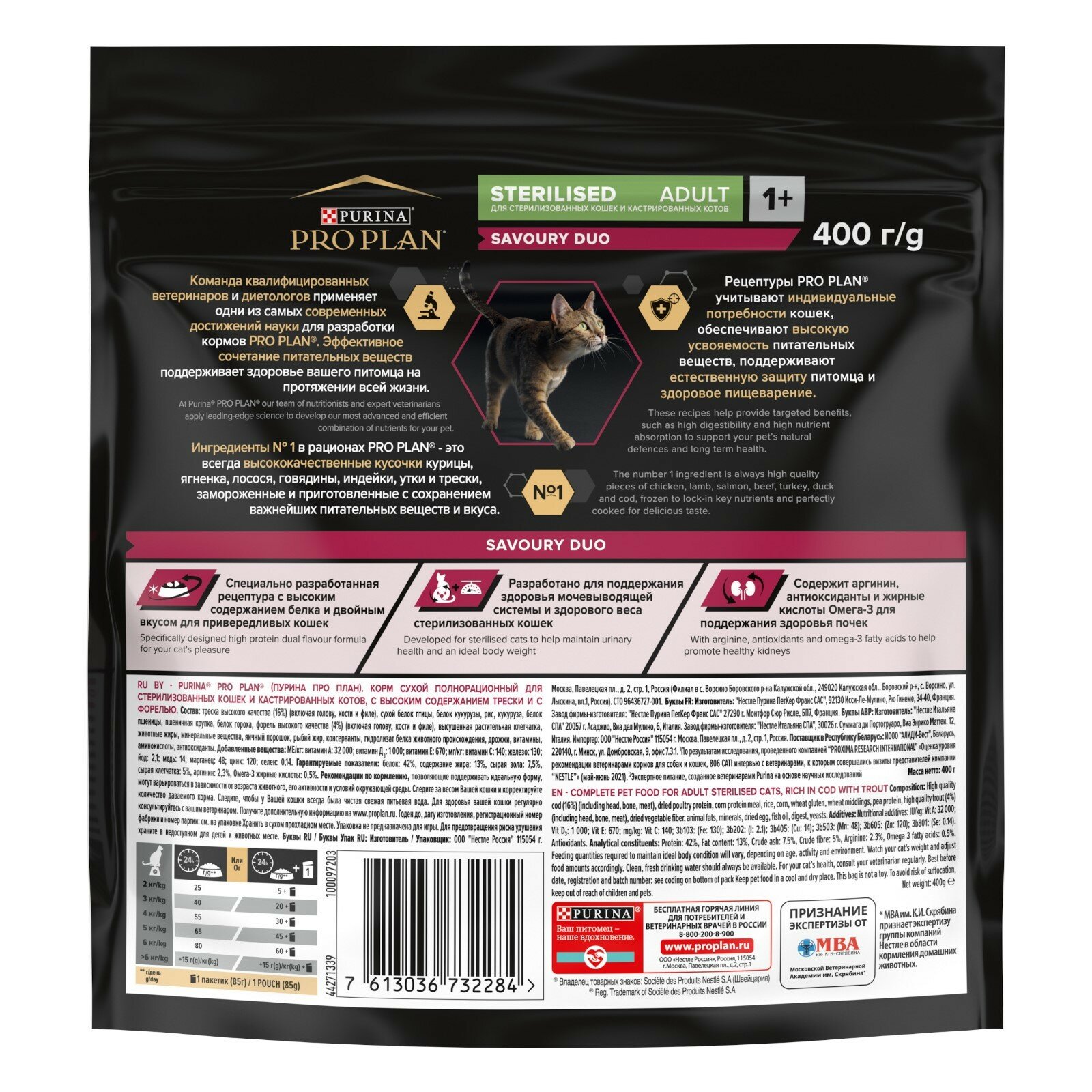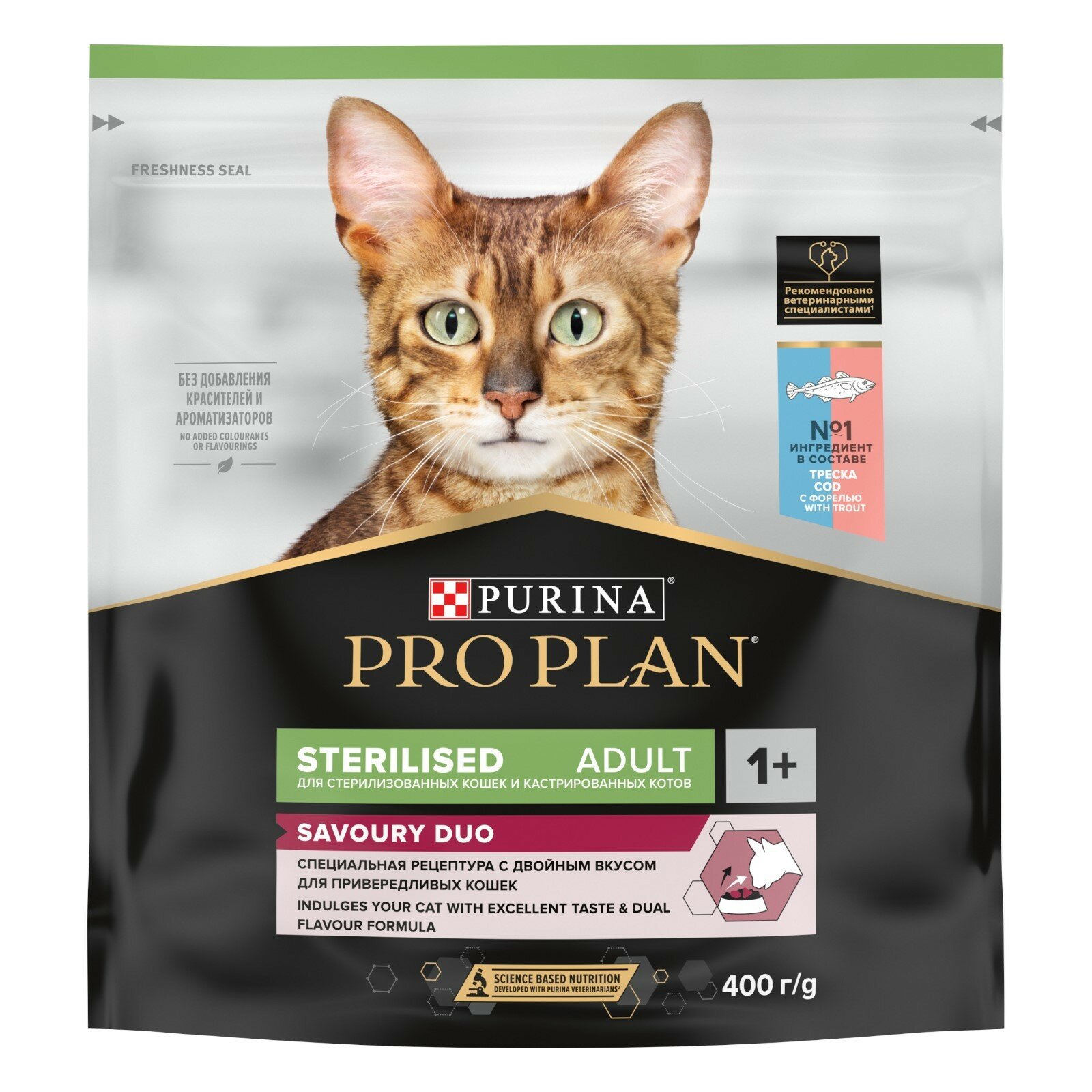 Сухой корм Pro Plan для стерилизованных кошек и кастрированных котов, с высоким содержанием трески и c форелью 400 г х 1 шт