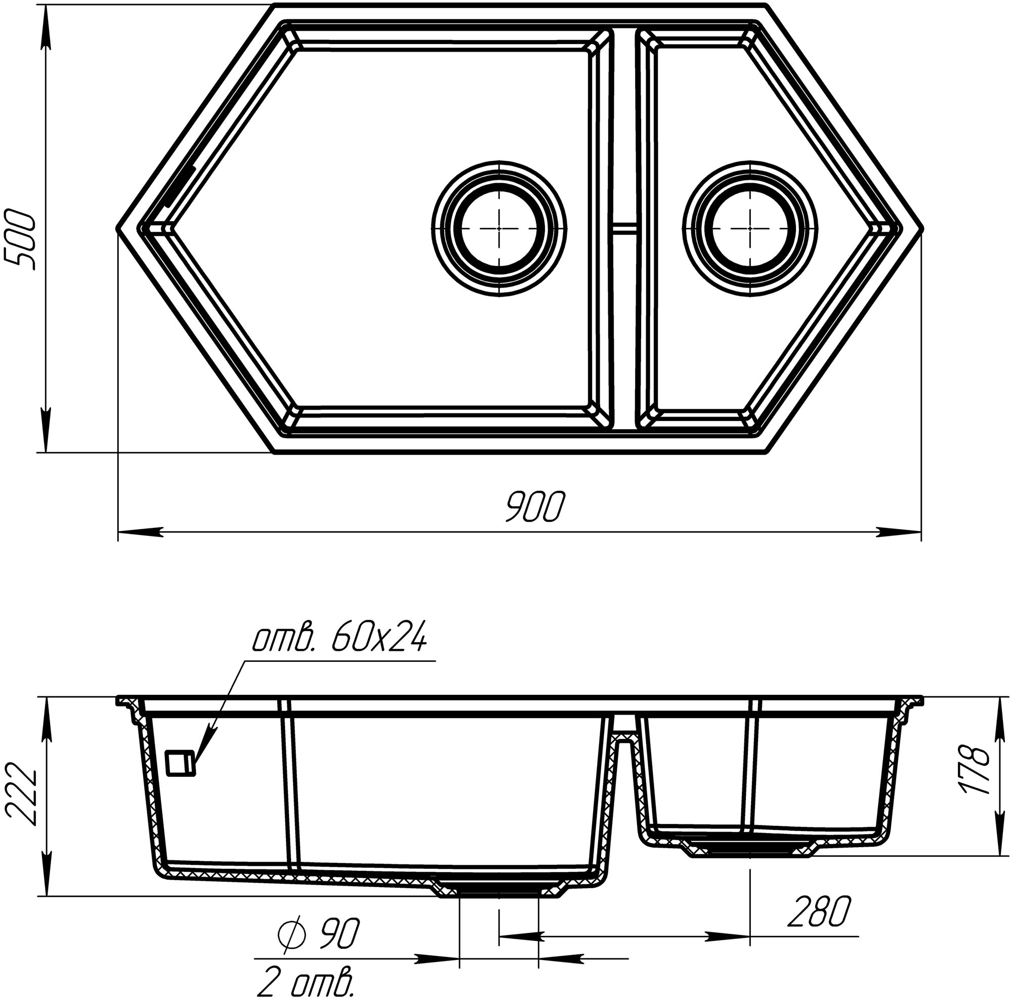 | Форма мойки | нестандартная |