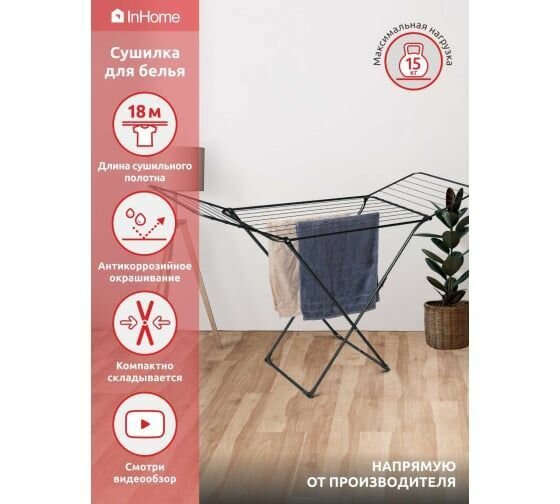 Купить Сушилка для белья InHome напольная раскладная,181x54х108 см, 18 м черная INCD1/1 .