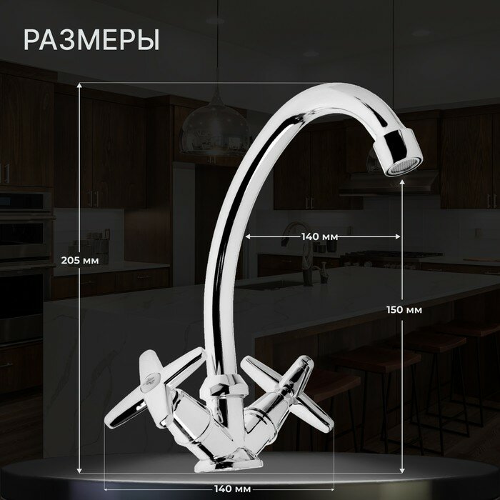 Смеситель для кухни ZEIN ZC2021, двухвентильный, кран-букса латунь 1/2", без подводки, хром
