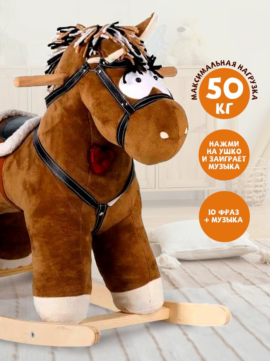 Купить Качалка музыкальная «Конь Свэн», цвет коричневый
