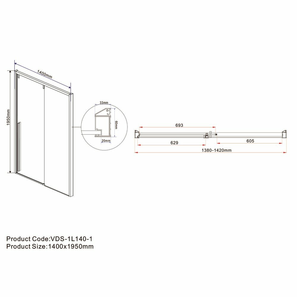 Душевая дверь Vincea Lugano VDS-1L140CL-1 140x195 профиль хром, стекло прозрачное
