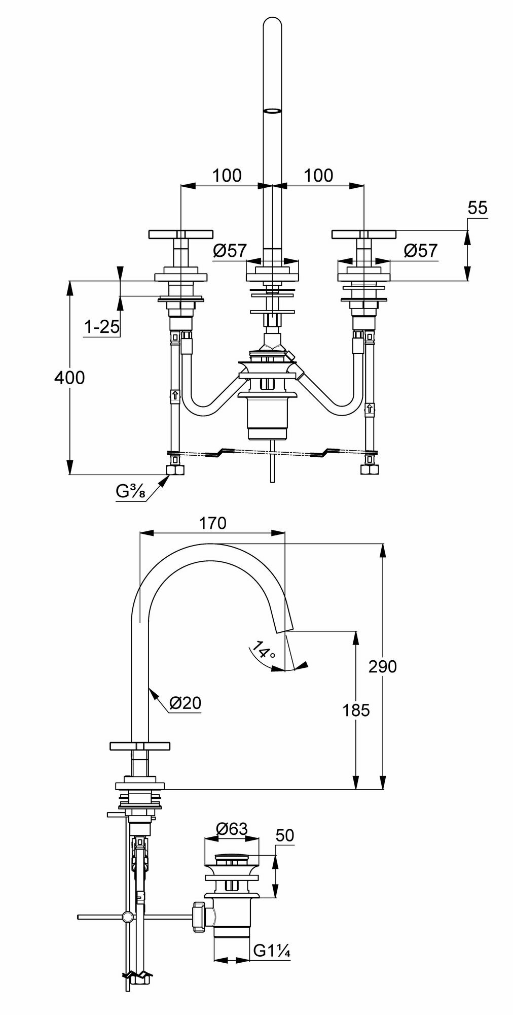 Смеситель для раковины KLUDI NOVA FONTE Classic с донным клапаном 201430520