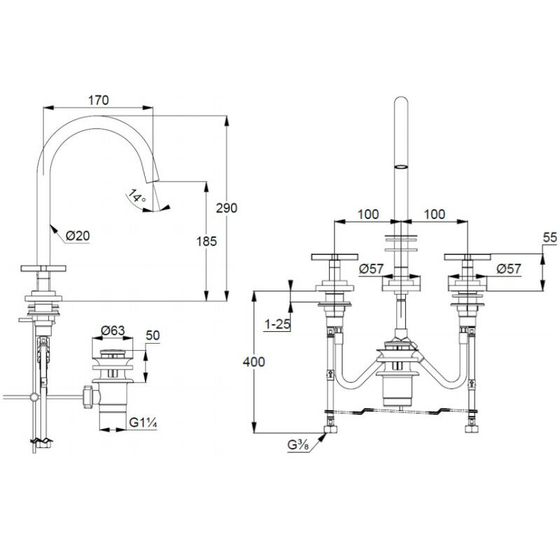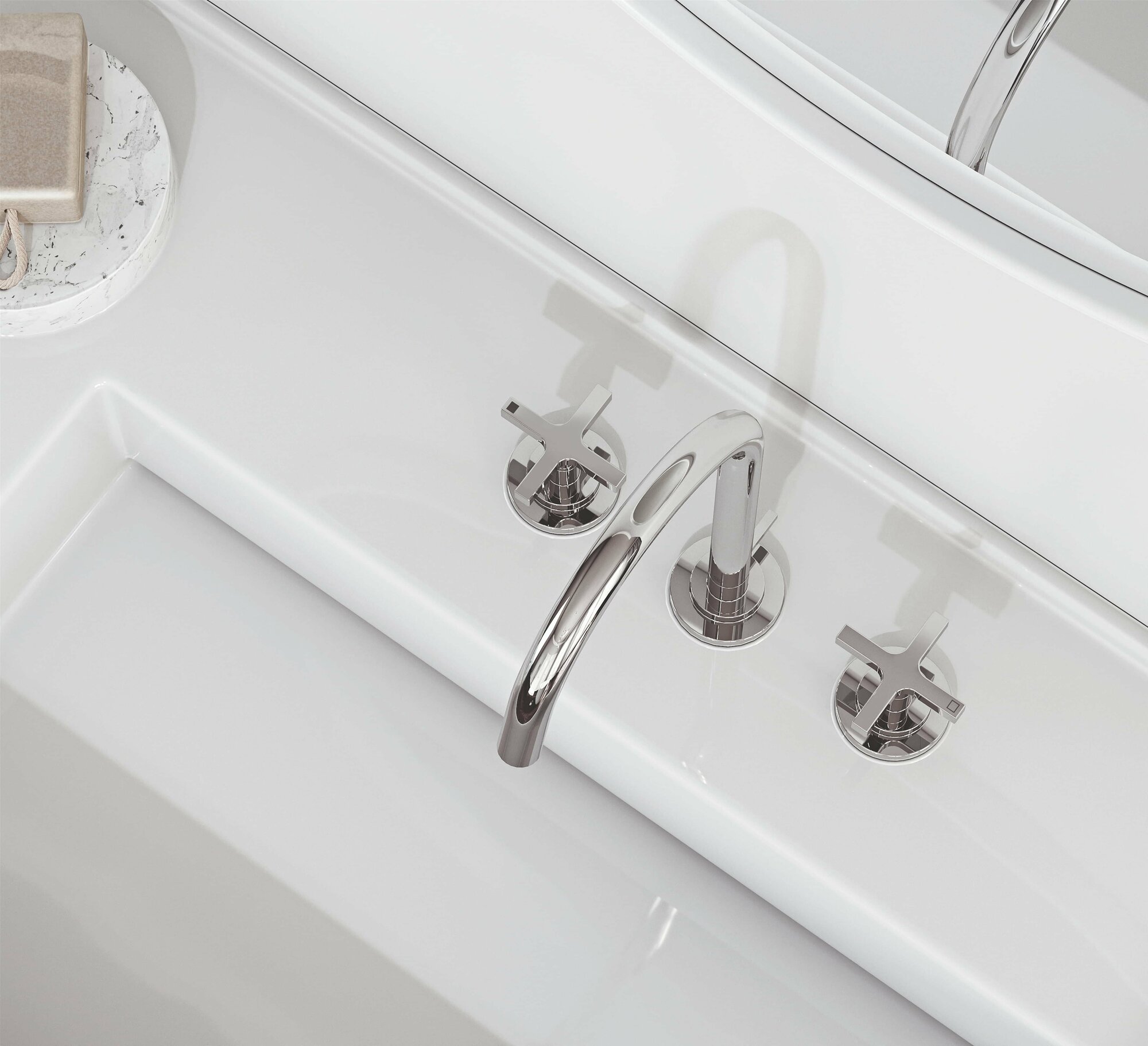 Смеситель для раковины на 3 отверстия Kludi Nova Fonte, арт. 201430520, с донным клапаном, крестообразные рукоятки