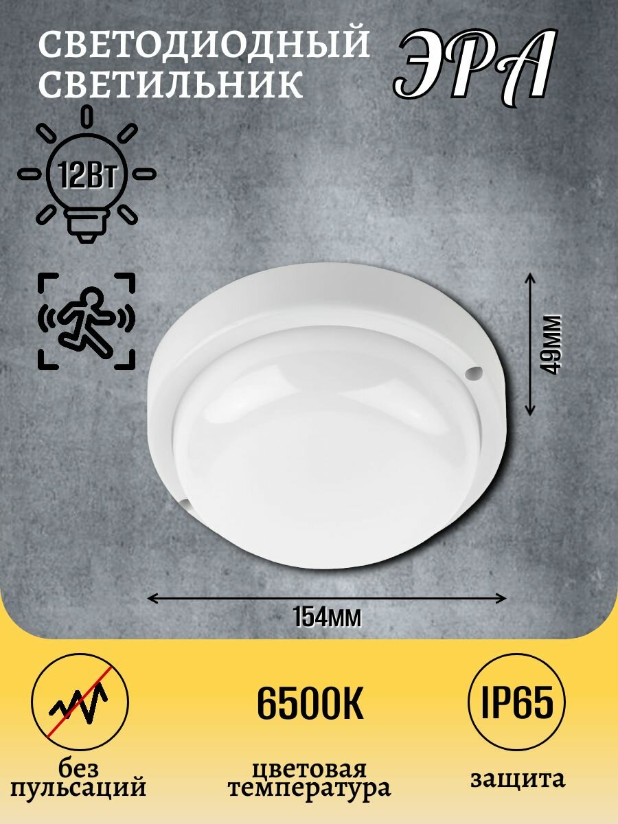Светильник светодиодный SPB-201-0-65К-012 Круг 12Вт 6500К IP65 ЖКХ, ЭРА Б0047620 (1 шт.)