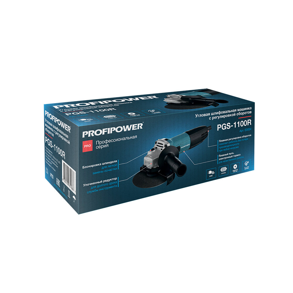 УШМ PROFIPOWER PGS-1100R E0004, 125мм, 1100Вт, регулировка оборотов (в обновлённой версии,серо-чёрный)