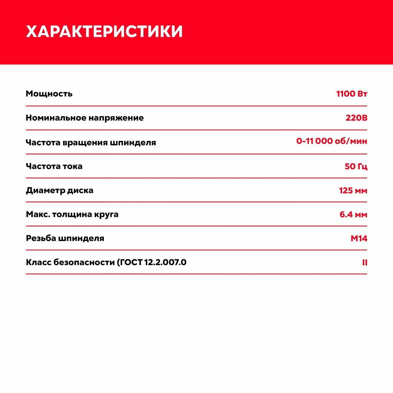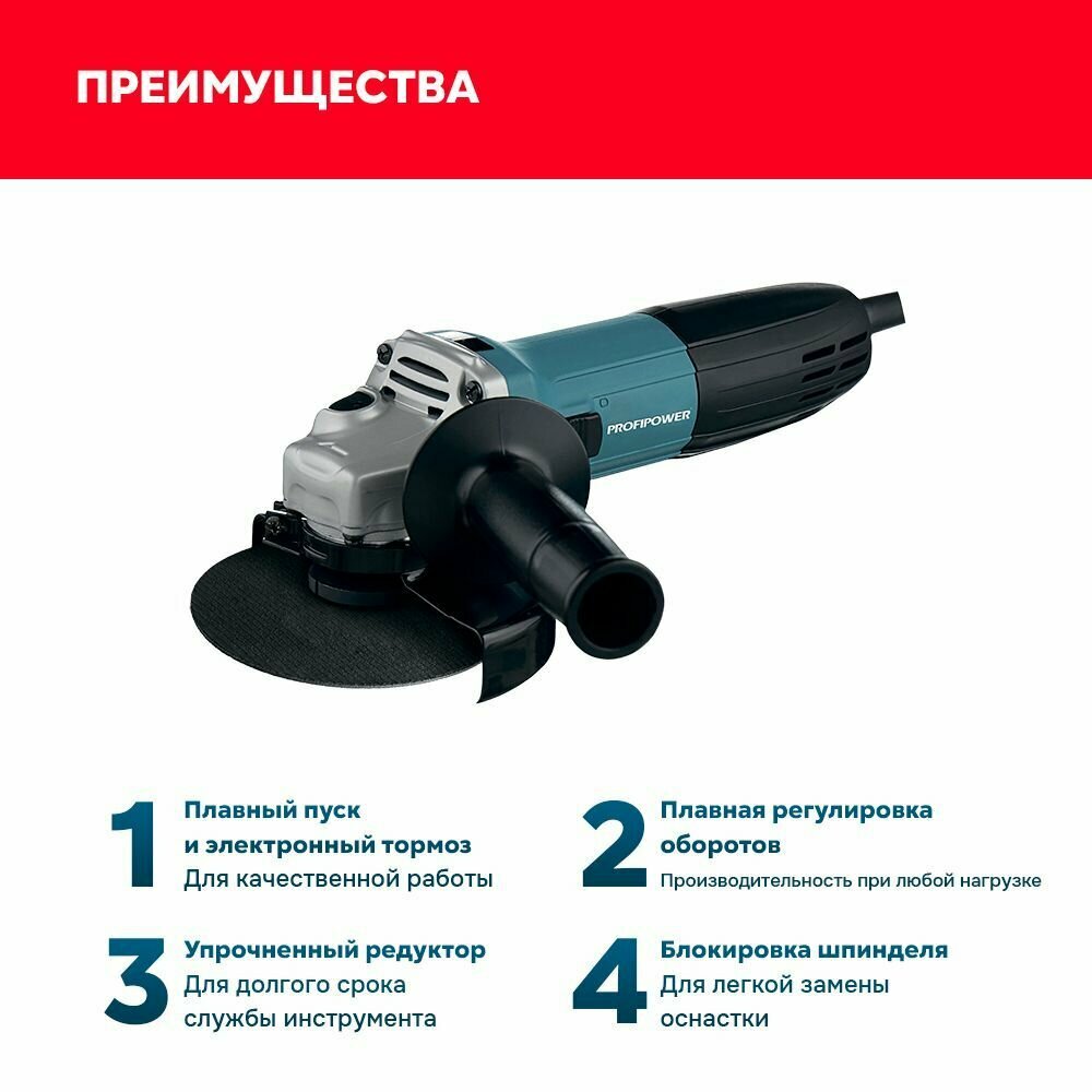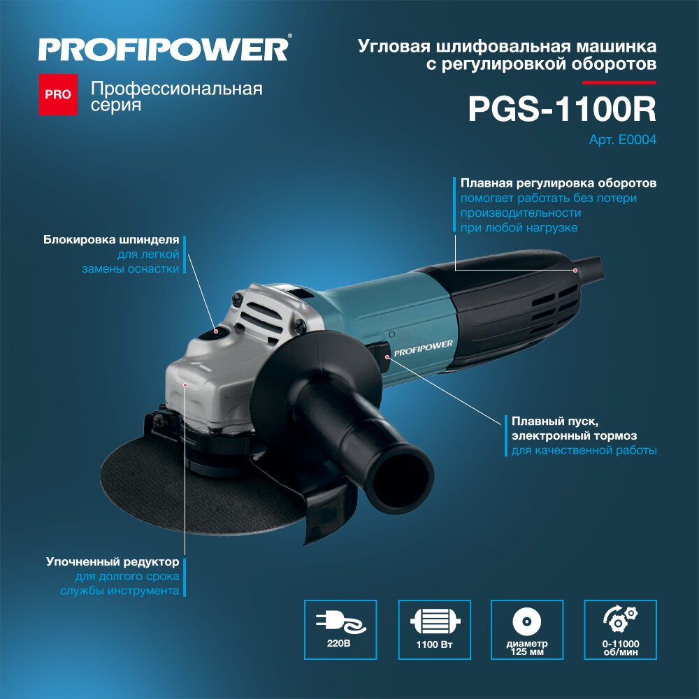 УШМ PROFIPOWER PGS-1100R E0004, 125мм, 1100Вт, регулировка оборотов