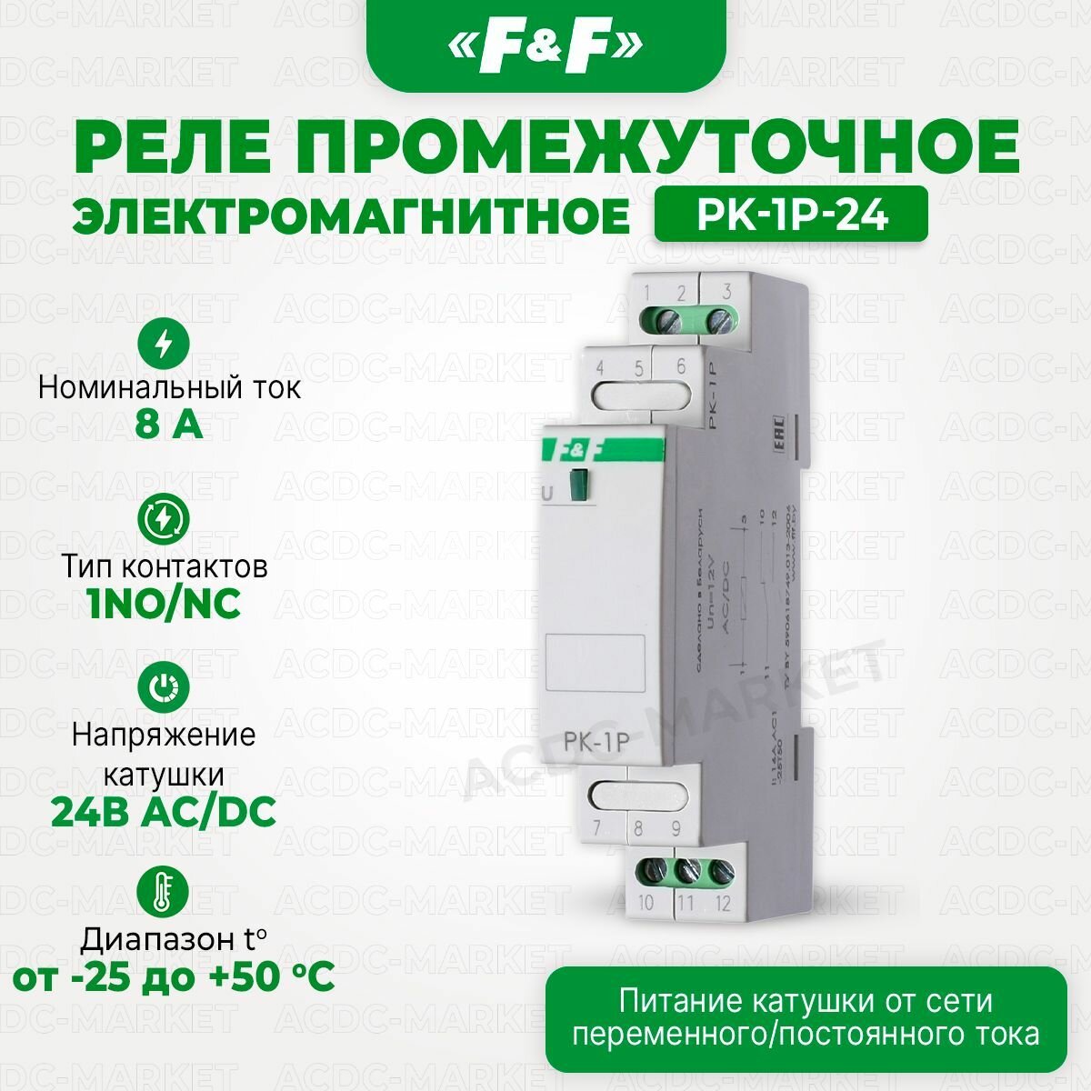 Реле промежуточное (электромагнитное) F&F PK-1P-24